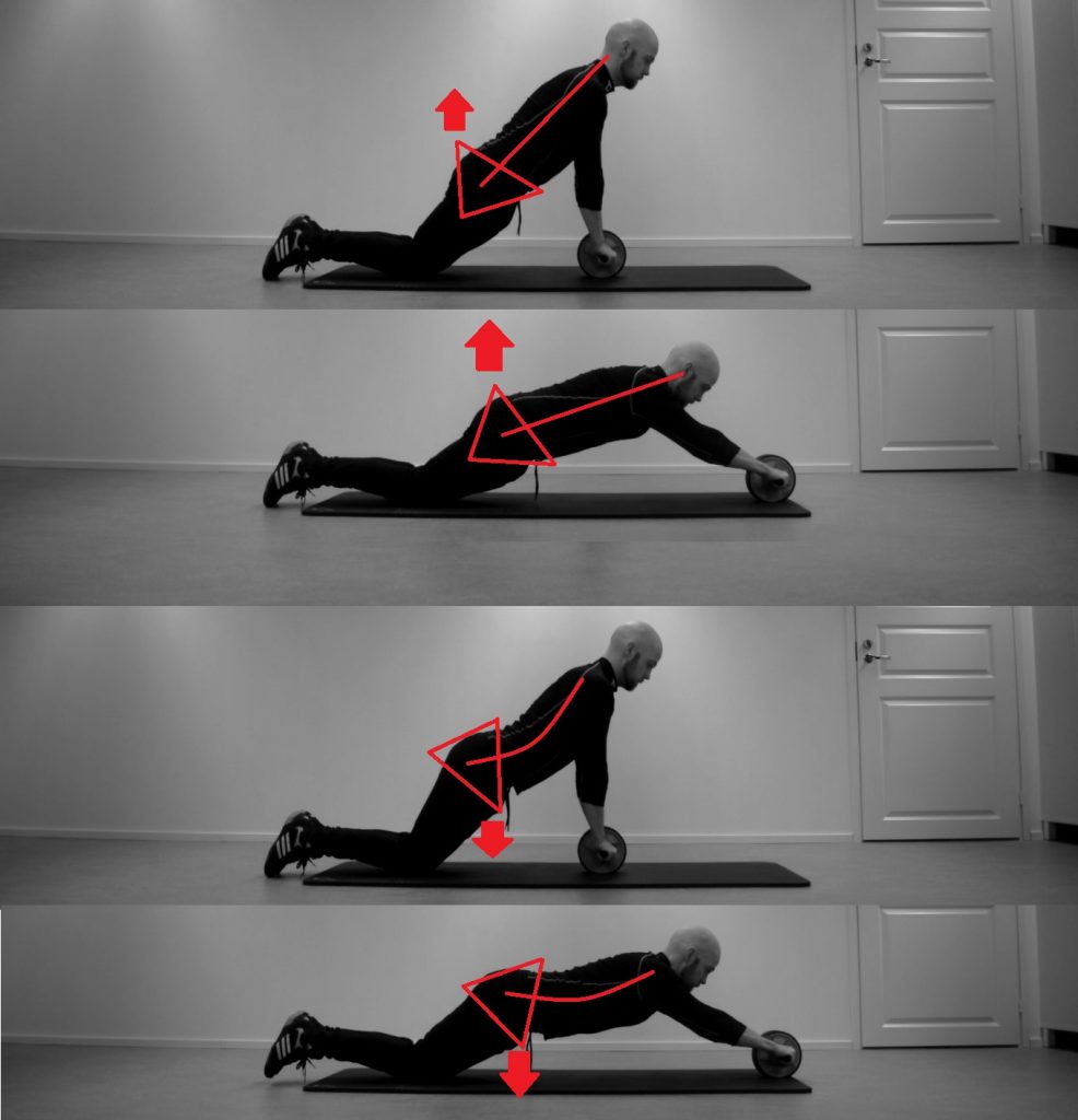 Selkärangan ojennuskuormituksen lisäämisen seurauksena joudutaan työskentelemään huomattavasti voimakkaammin ylläpitääkseen lantiokorin asentoa. Keskivartaloalueelle kohdentuvan vipuvarren pidentyessä tämä kuormitus muuttuu entistä voimakkaammaksi. Ja nämä kaksi tekijää tekevät voimapyörästä merkittävästi kuormittavamman harjoitteen suhteessa lankkuun. 3) kohta liittyy enemmän hartiaseutuasiaan, ja tämä tekijä tulee myös huomioida tarkkaan – hartiaseudun voimantuotto voi kuormittua jopa enemmän, kuin keskivartaloalueen voimantuotto!