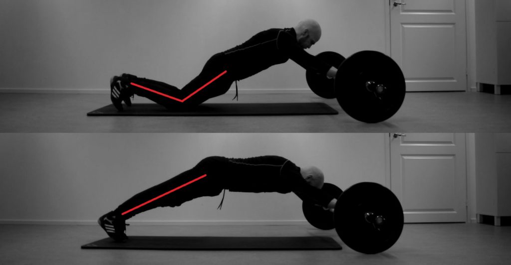 Keskeisin suoritustekniikkaan liittyvä kompromissi löytyy aloitusasennosta, keskittyen lonkkanivelen asentoon. Idealtaan tämä ei ole tekniikkavirhe (tässä ei tapahdu mitään nivelrakenteita tuhoavaa), eli tämä liittyy enemmänkin tiedostamattomuuteen harjoitteen toteuttamisen osalta! Tyypillisin kompromissi on tämä: aloitusasentona on konttausasento! Ja sehän ei ole homman tarkoitus ollenkaan! Harjoite on kirjaimellisesti sama harjoite, kuin lankku (keskivartalon osalta), eli keskivartalon asentoa ylläpidetään koko ajan muuttumattomana! Aloitusasennon sekä ala-asennon pitäisi olla keskivartalon osalta yksi ja sama – eli reisiluu ja keskivartalo ovat yhdessä suorassa linjassa!